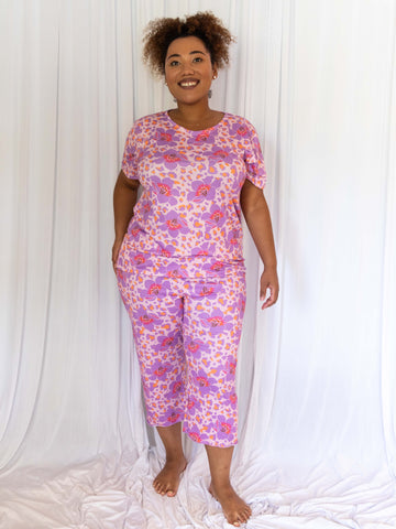 Cozy Cheetah Girl Short Sleeve Pajama Capris Set