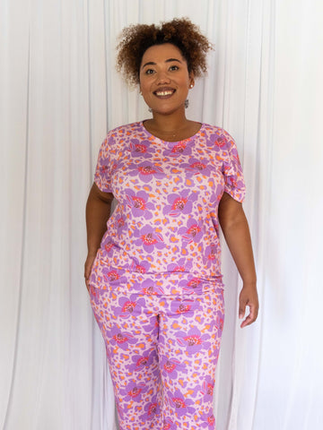 Cozy Cheetah Girl Short Sleeve Pajama Pant Set