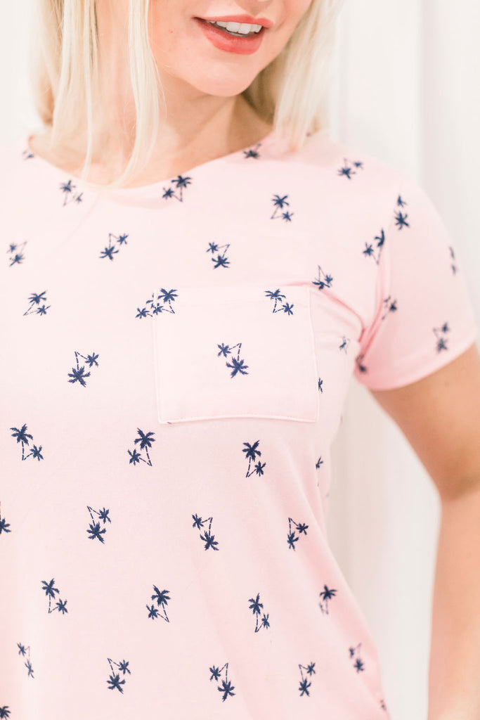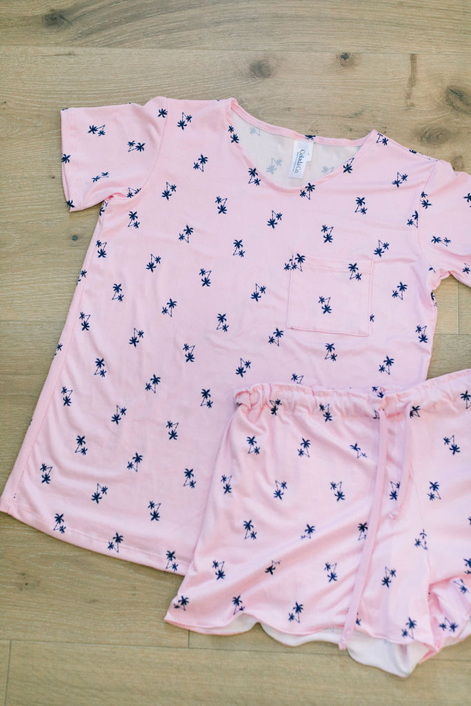 Cozy Pink Palm Short Sleeve Pajama Boxer Set