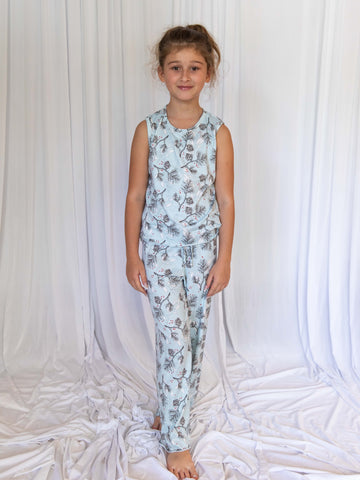 Kids Cozy Blue Pine Cone Pajama Pant Set