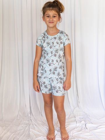 Kids Cozy Blue Pine Cone Short Sleeve Pajama Boxer Set