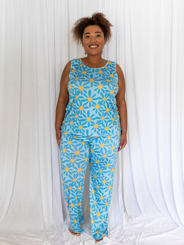 Slinky Cooling Blue Daisy Cones Pajama Pant Set