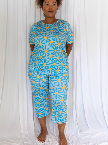 Slinky Cooling Blue Daisy Short Sleeve Pajama Capris Set