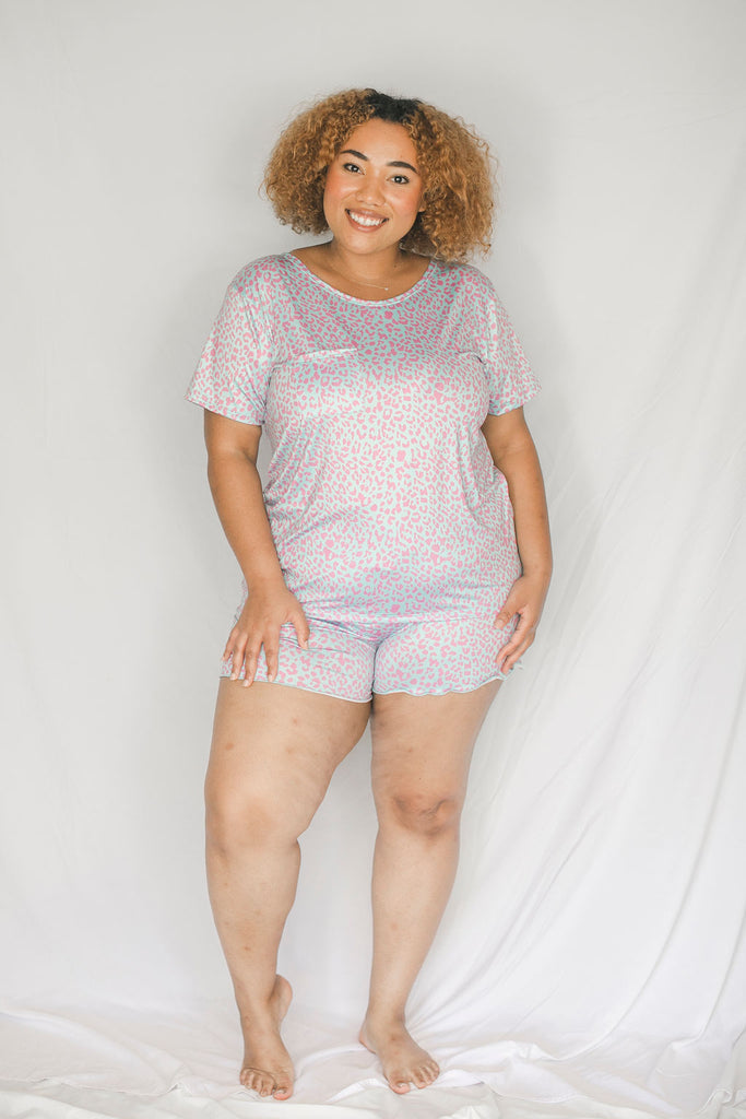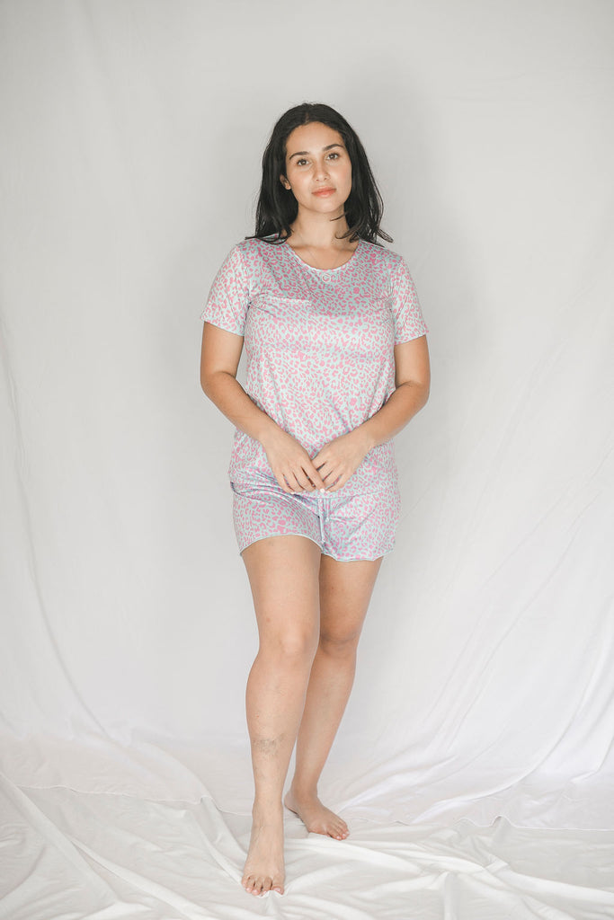Cooling Blue Leopard Short Sleeve Pajama Boxer Set
