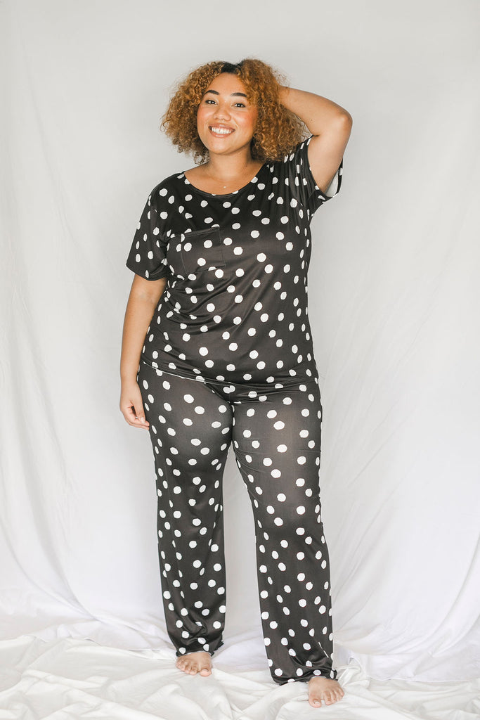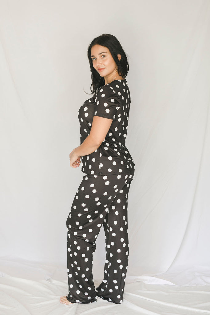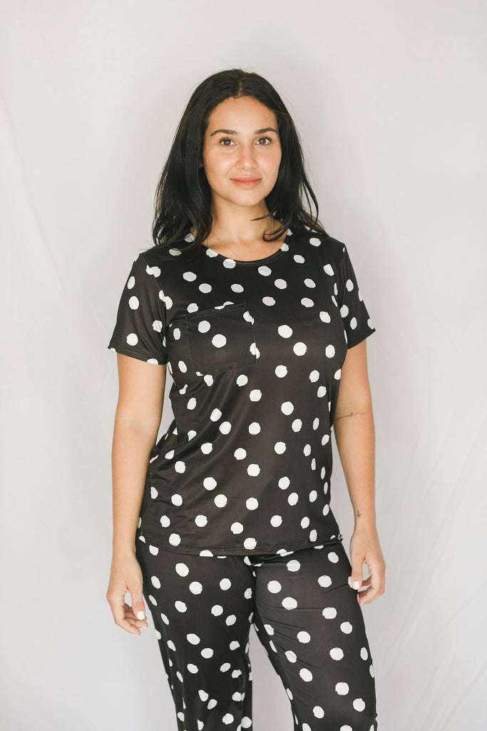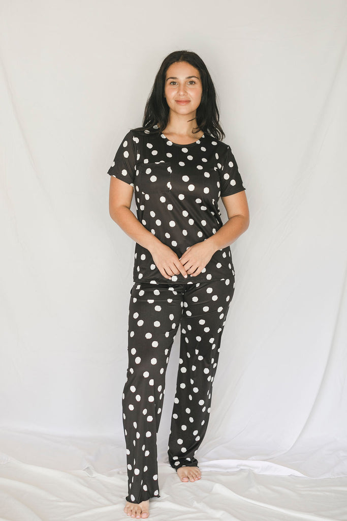 Cooling Polka Dot Short Sleeve Pajama Pant Set