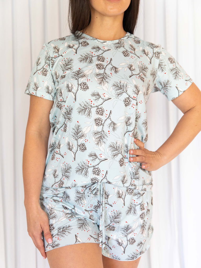 Cozy Pine Cone Christmas Ice Short Sleeve Pajama Boxer Set