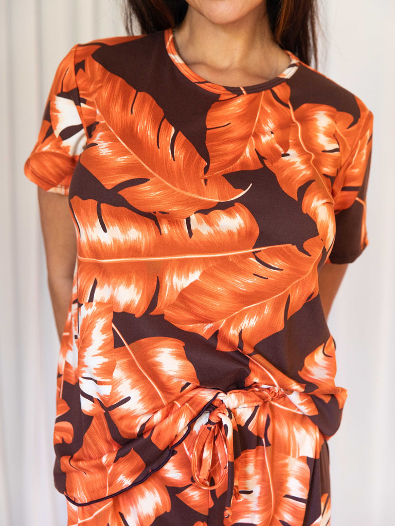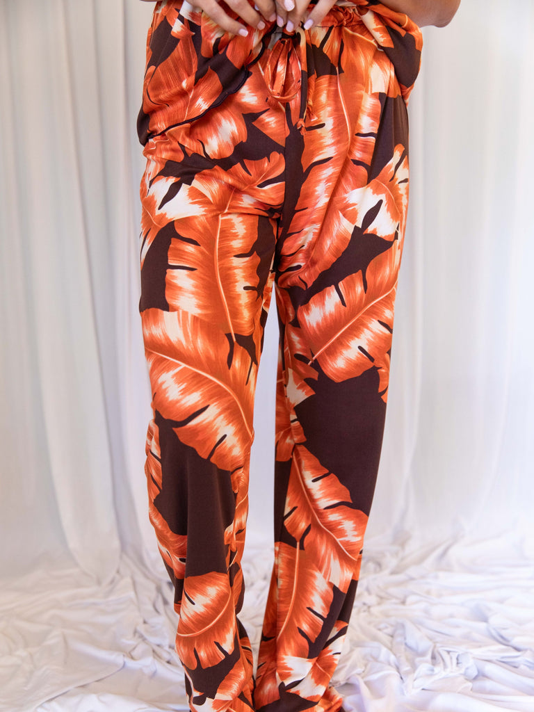 Cozy Fiery Palm Short Sleeve Pajama Pant Set