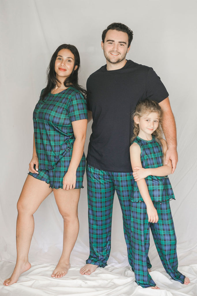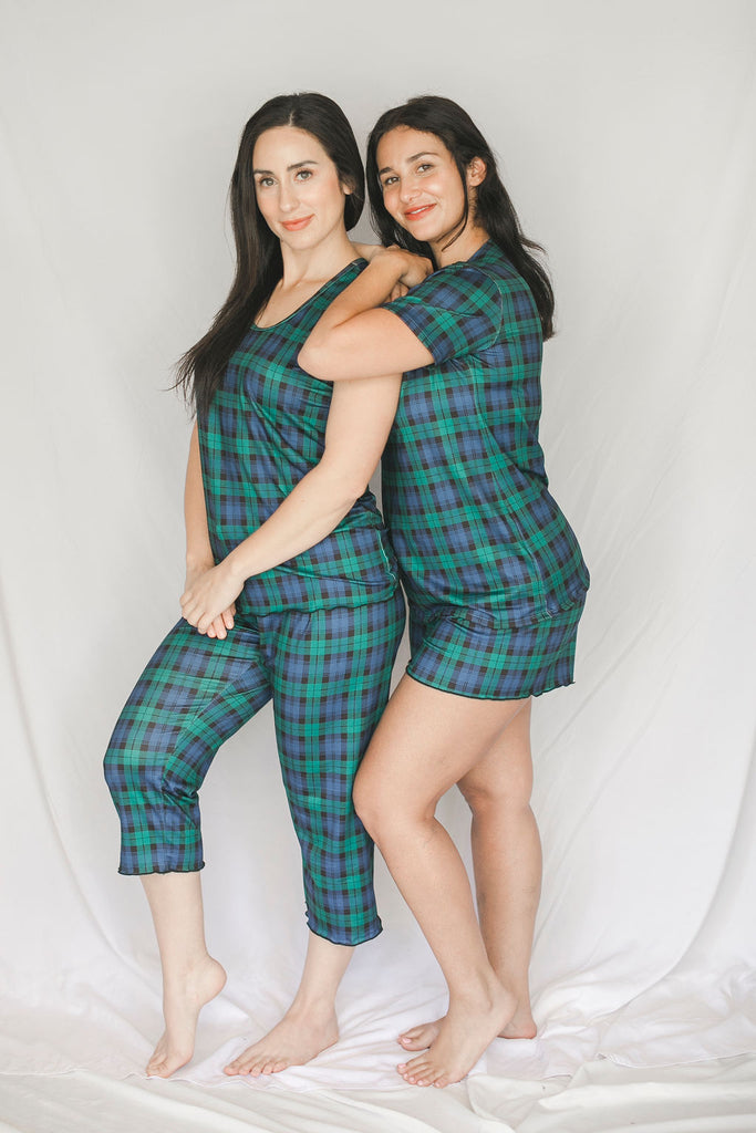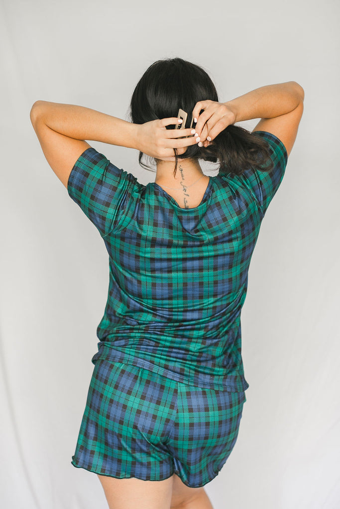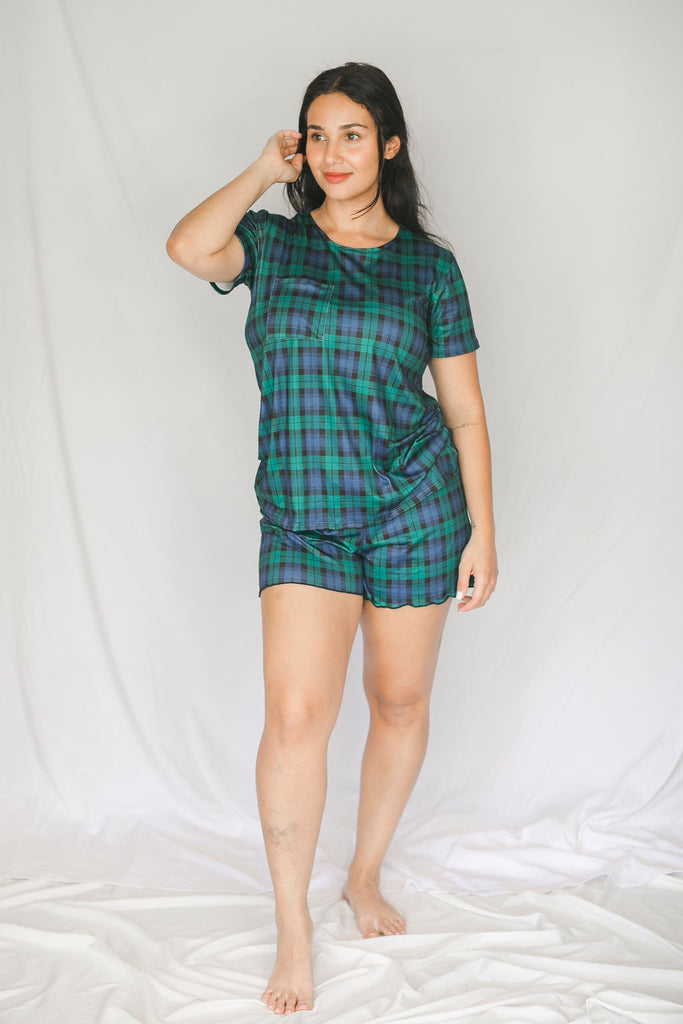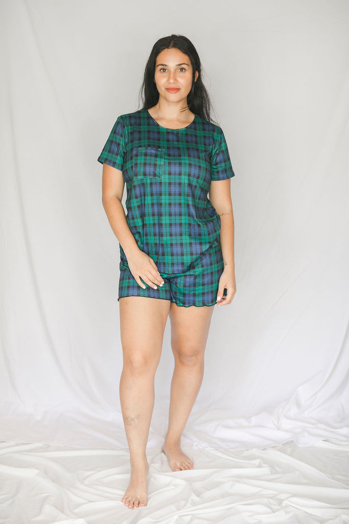 Cozy Green Plaid Short Sleeve Pajama Boxer Set