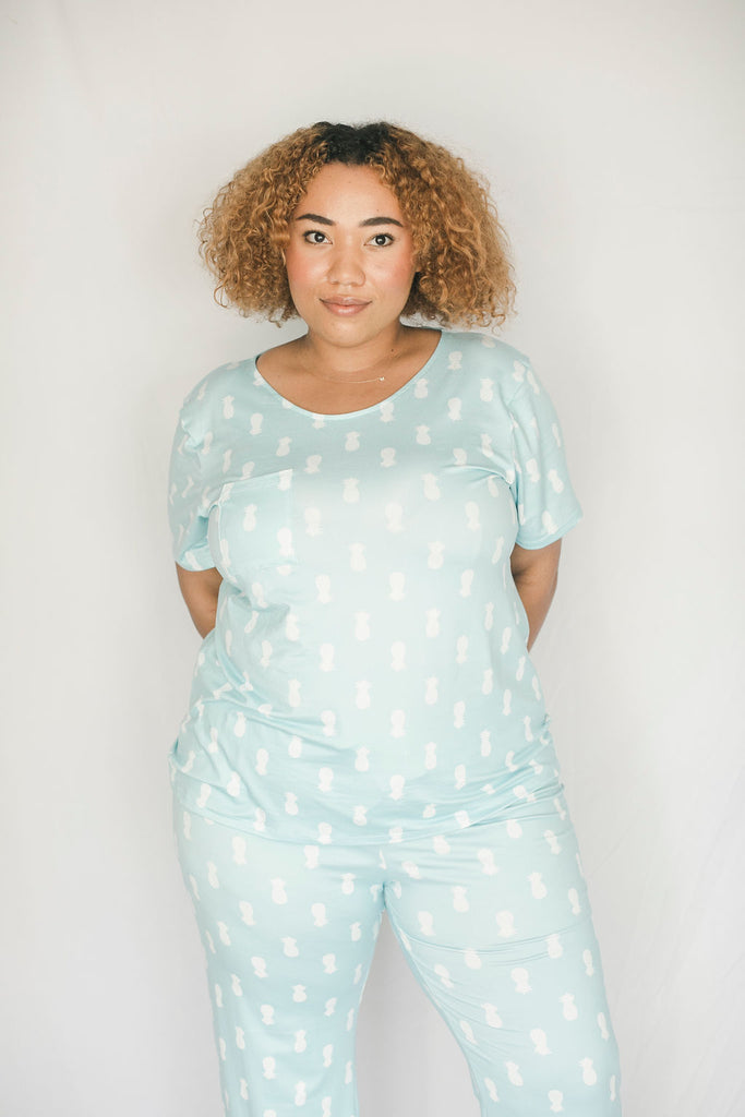 Cozy Pineapple Short Sleeve Pajama Pant Set