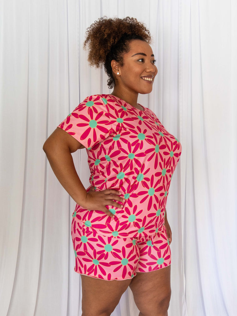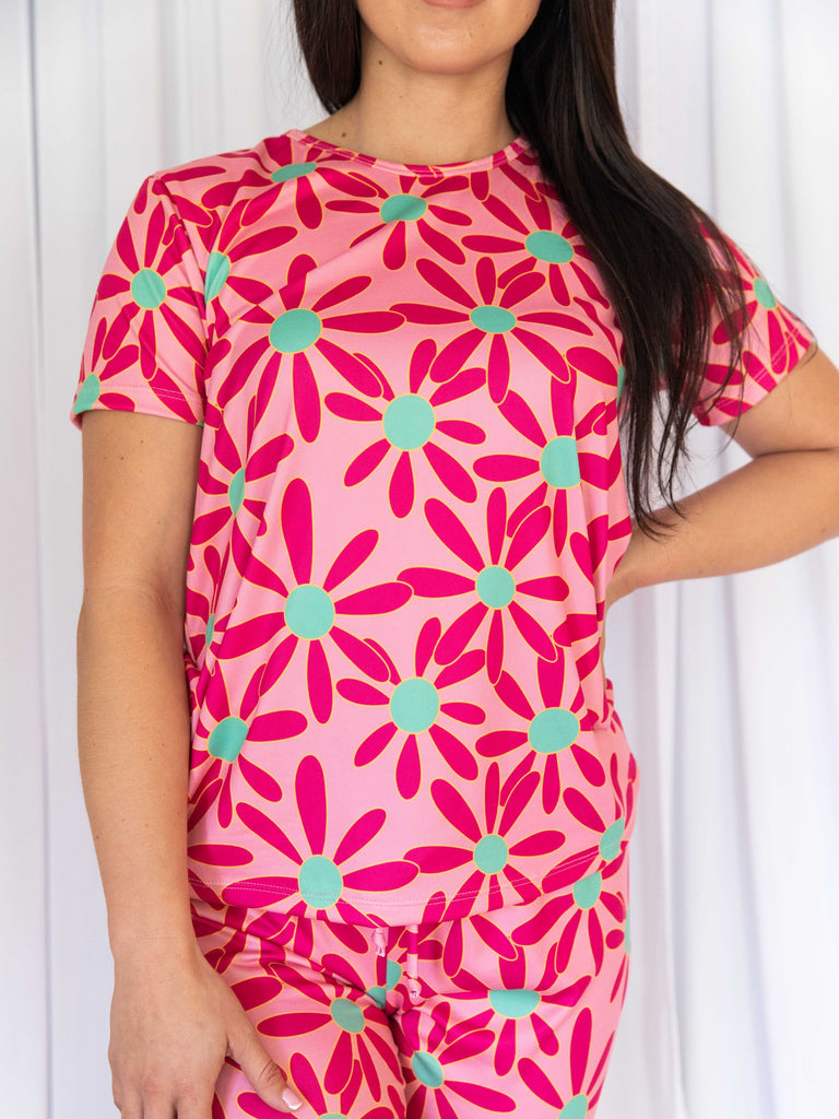 Cozy Pink Daisy Short Sleeve Pajama Boxer Set