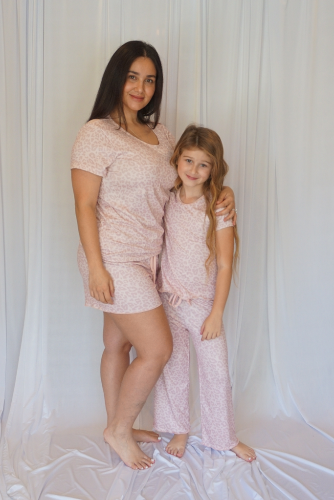Cozy Pink Leopard Short Sleeve Pajama Boxer Set