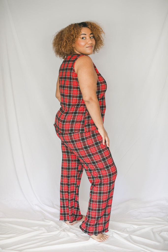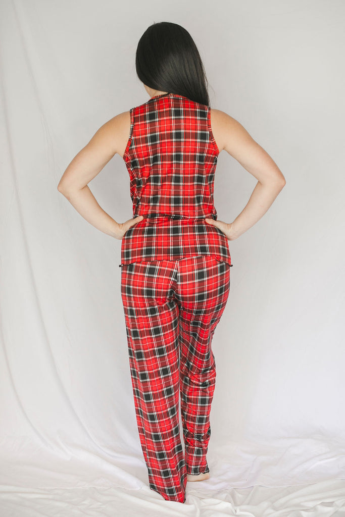 Cozy Red Plaid Pajama Pants Set