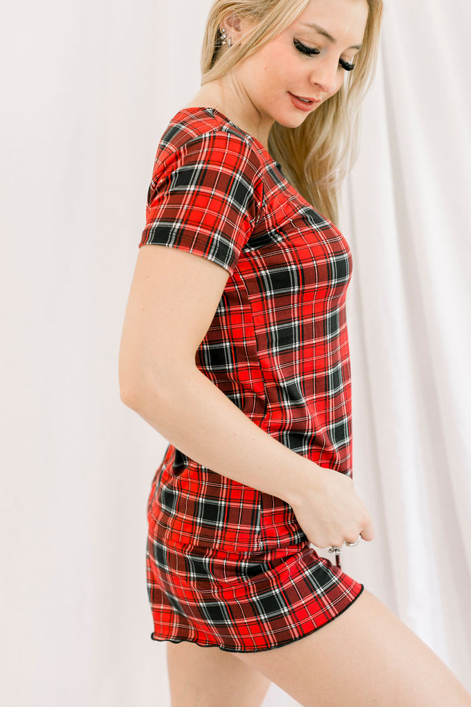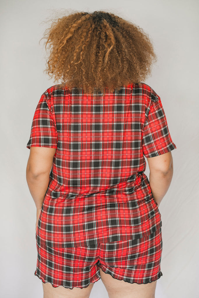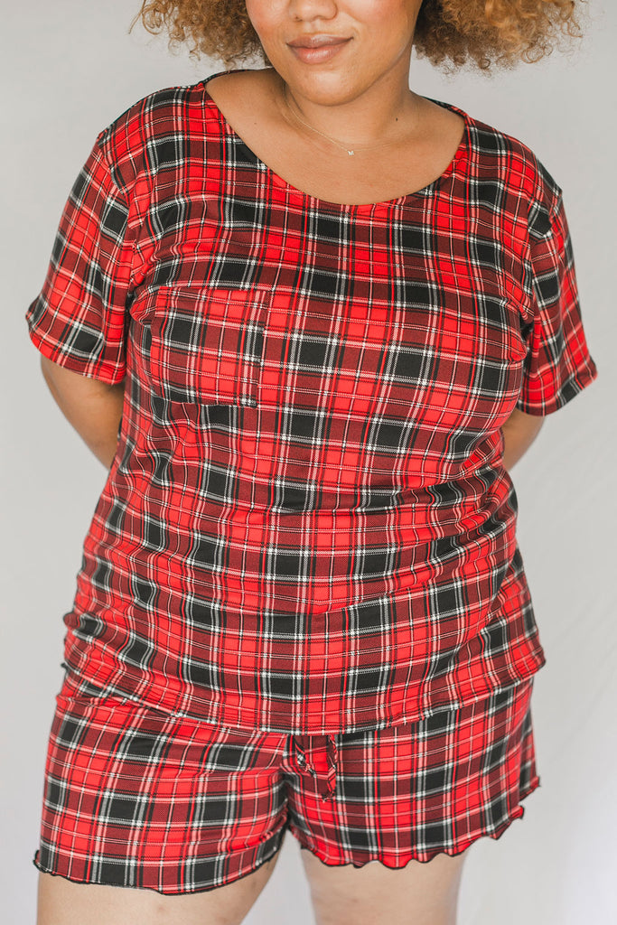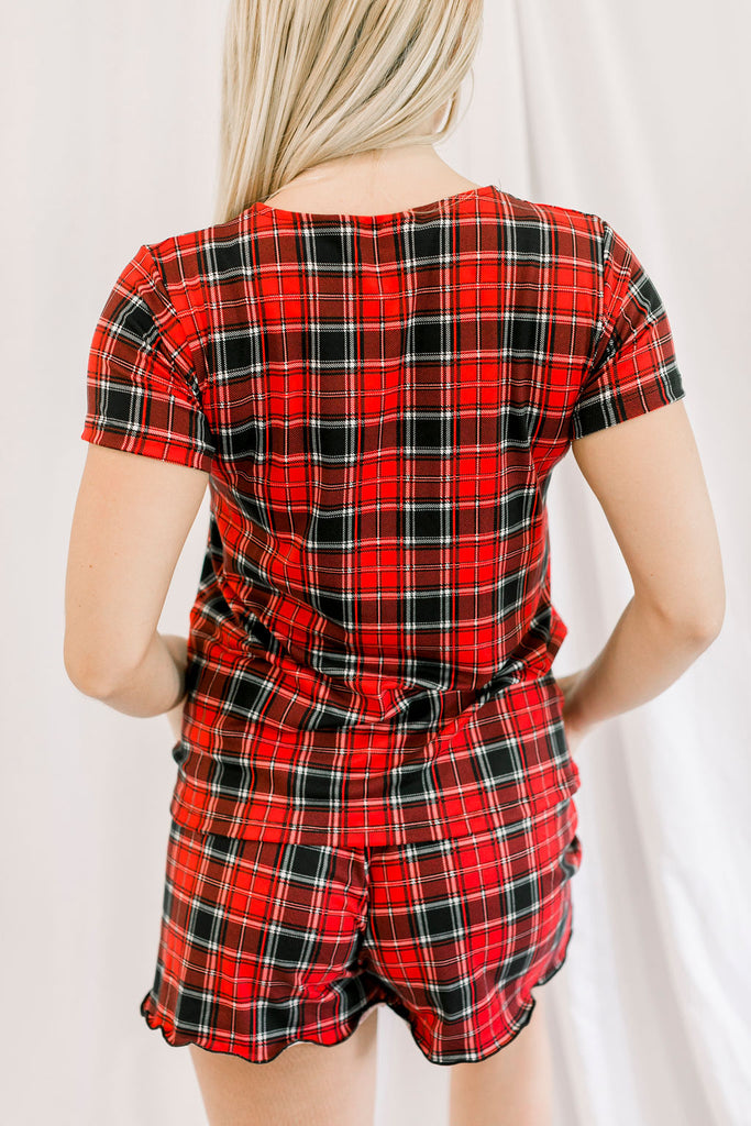 Cozy Red Plaid Short Sleeve Pajama Boxer Set