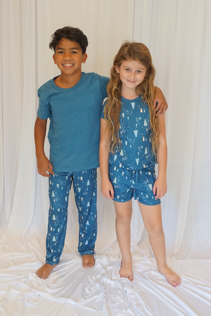 Kids Cozy Christmas Blue Pajama Boxer Sleeve Set
