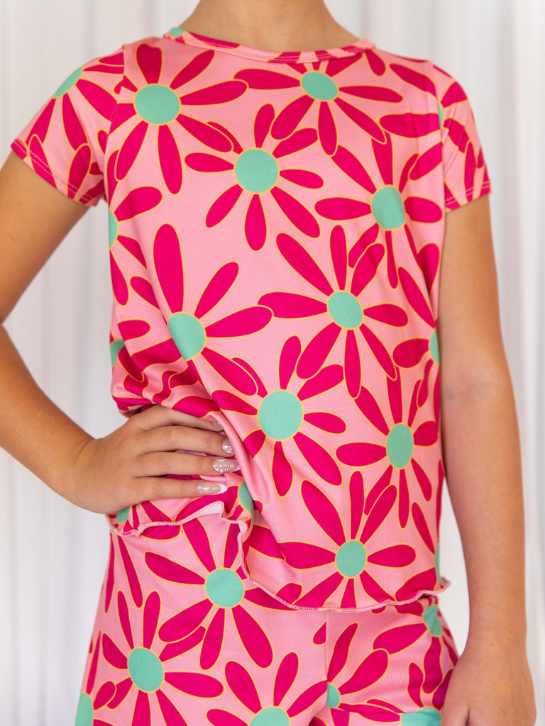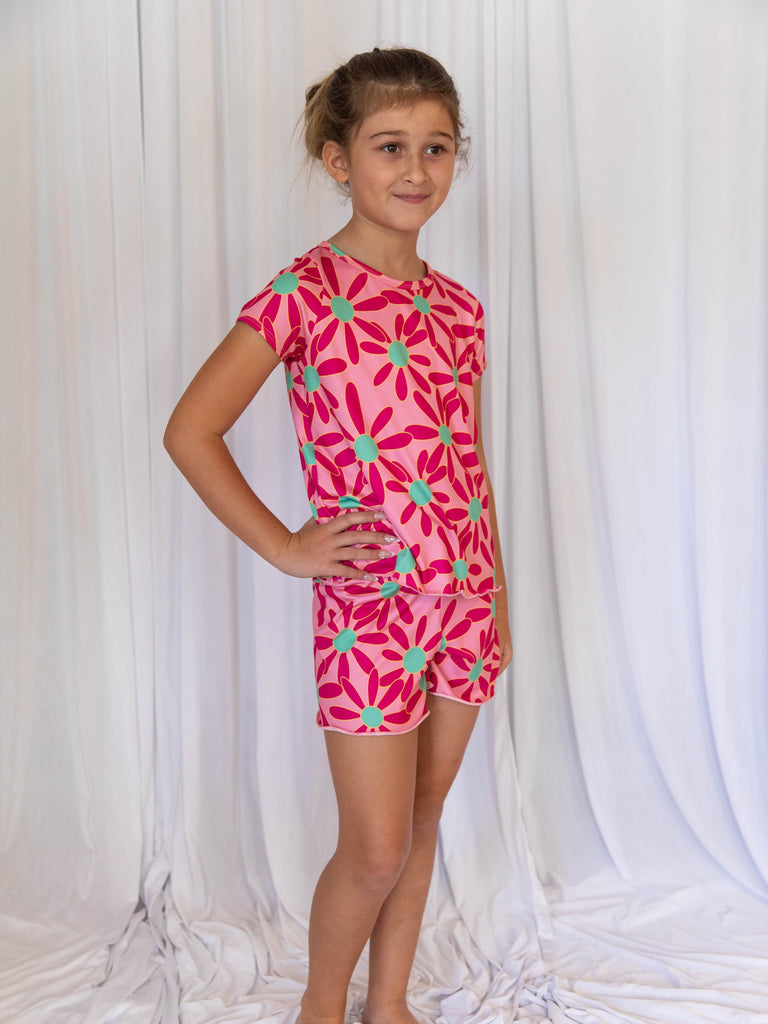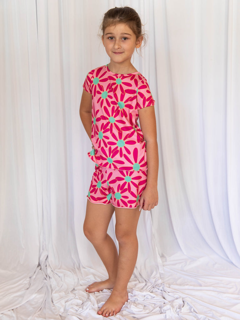 Kids Cozy Pink Daisy Short Sleeve Pajama Boxer Set