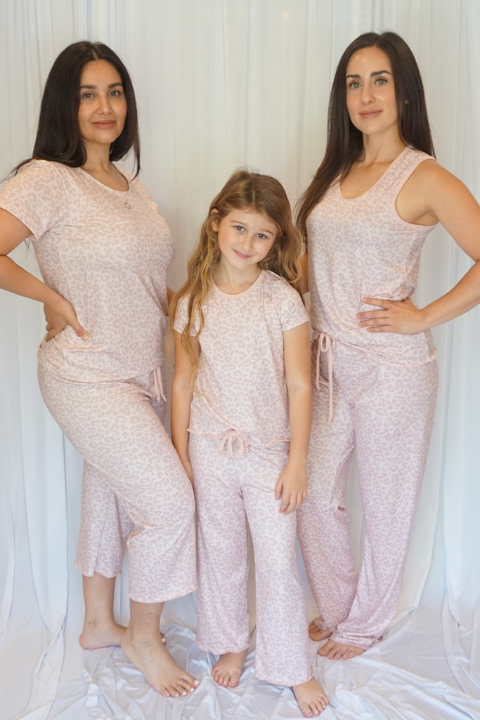 Kids Cozy Pink Leopard Pajama Pants Sleeve Set