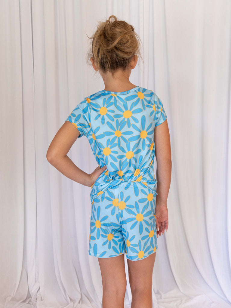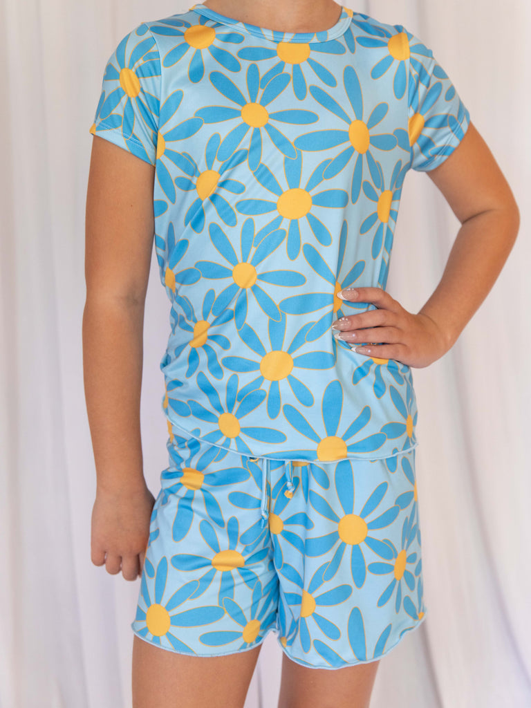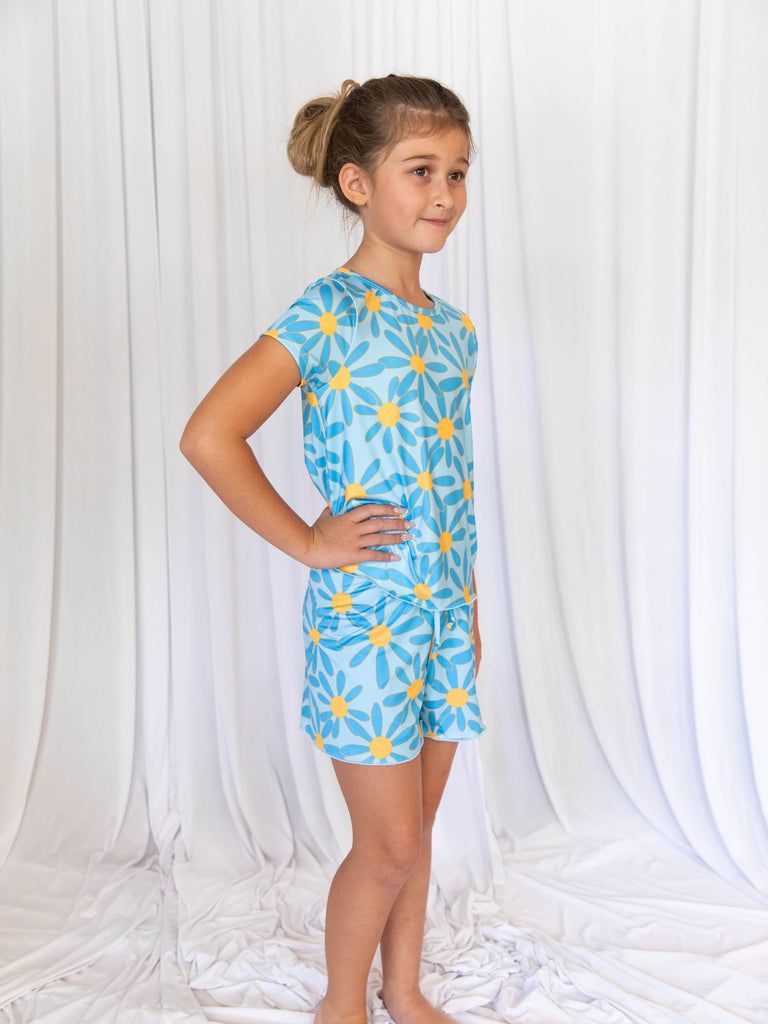 Kids Slinky Cooling Blue Daisy Pajama Boxer Set