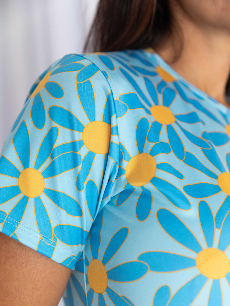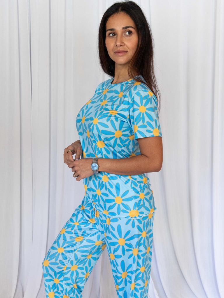 Slinky Cooling Blue Daisy Short Sleeve Pajama Pant Set
