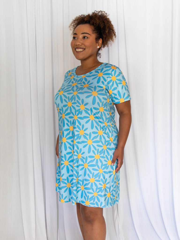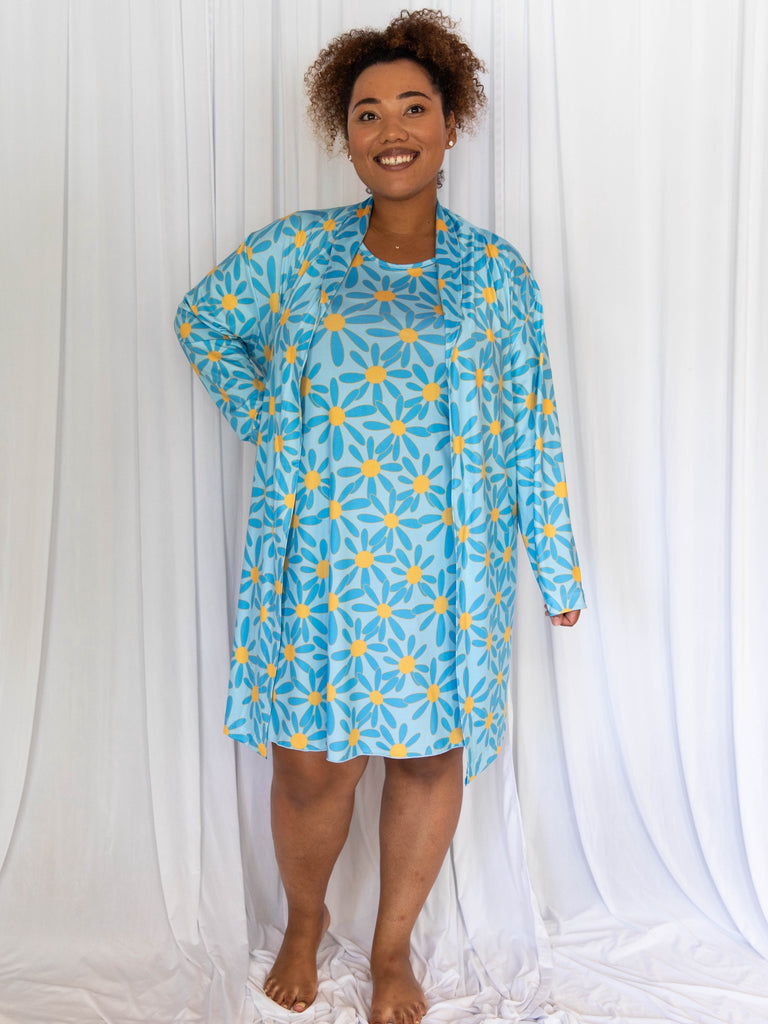 Slinky Cooling Blue Daisy Sleeve Night Gown