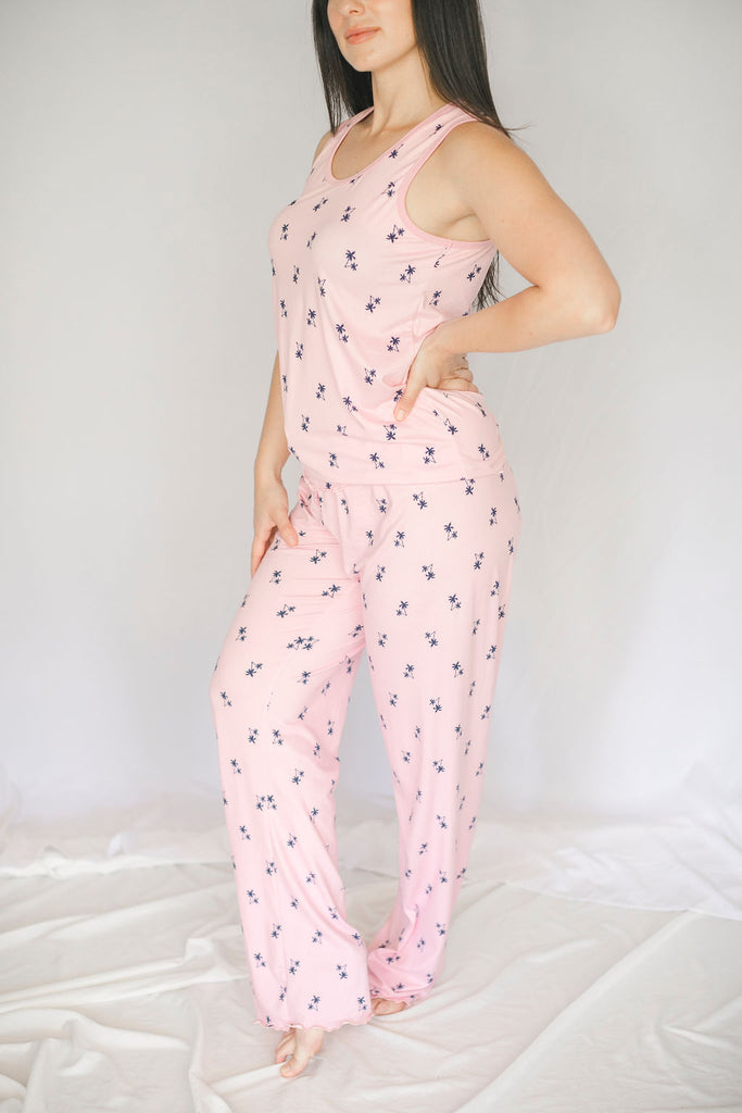 Cozy Pink Palm Pajama Pants Set