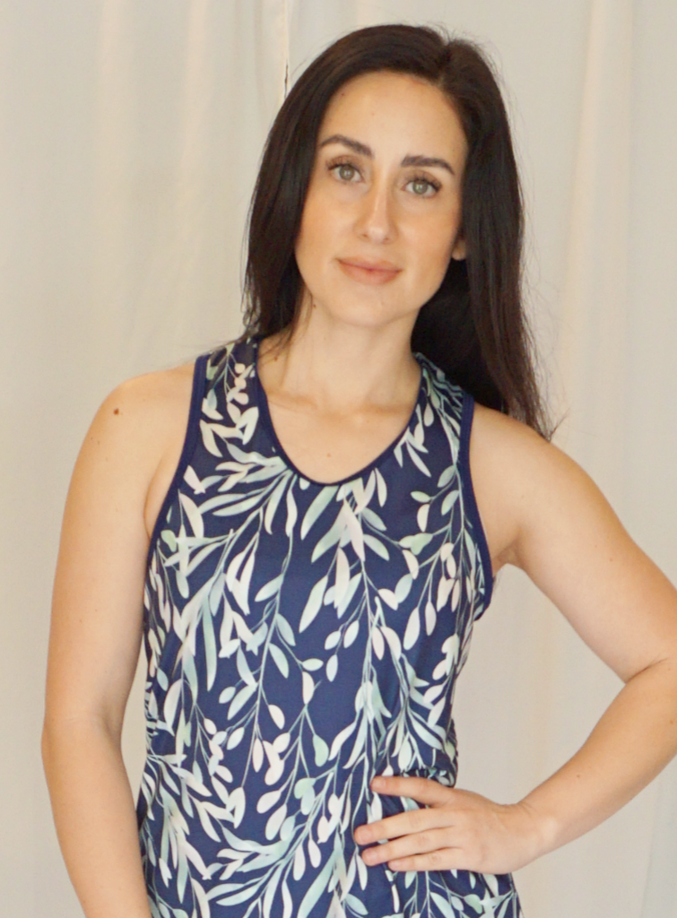 Sprigs and Leaves Navy Sporty Tank Dress w/ Pockets
